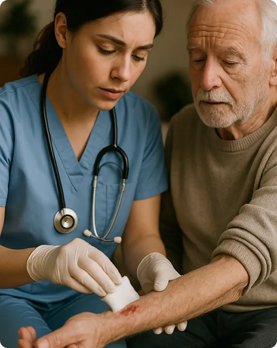 Personalized wound treatment delivered to your home by licensed professionals — helping patients heal faster, safer, and more comfortably.